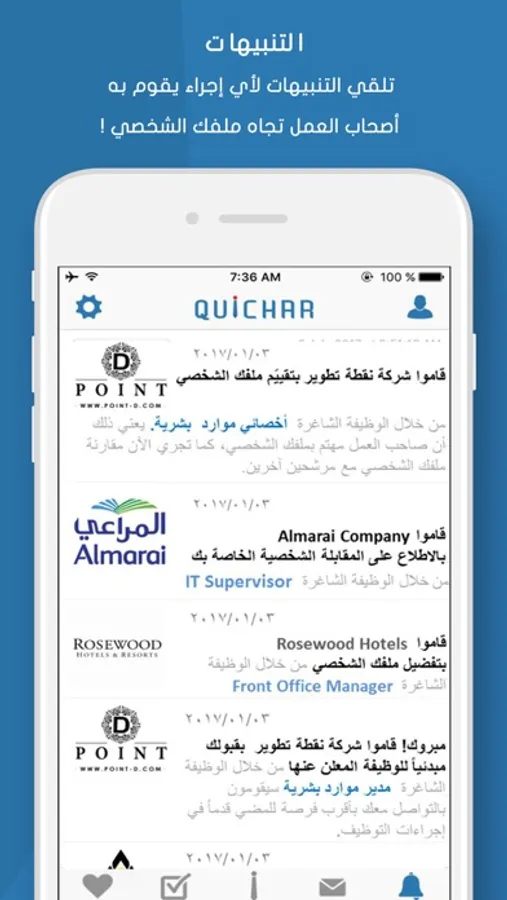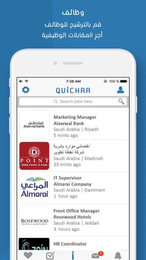 Quichar is an interactive application that offers an integrated range of advanced recruitment solutions that has exceptional features It provides for job seekers with the fastest and easiest way to find jobs, apply for them , make job interviews and at any time and many other unique features it also allows the employers and job seekers to communicate with each other without any interference in the recruitment process.