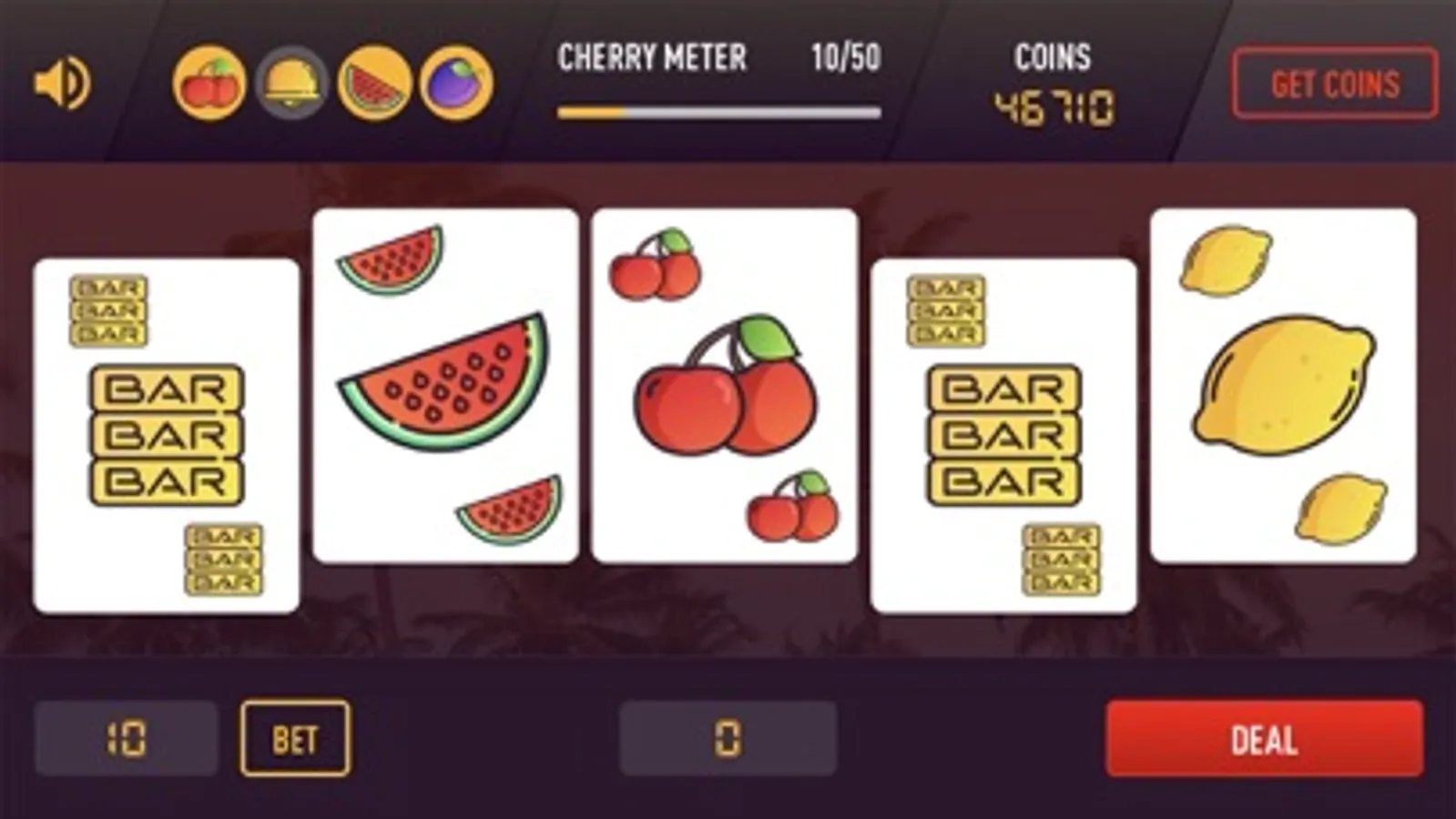 The Classic Fruit Poker casino slot machine. Get the highest combination of cards, double or nothing, collect cherries and more. This game is guaranteed trip down memory lane