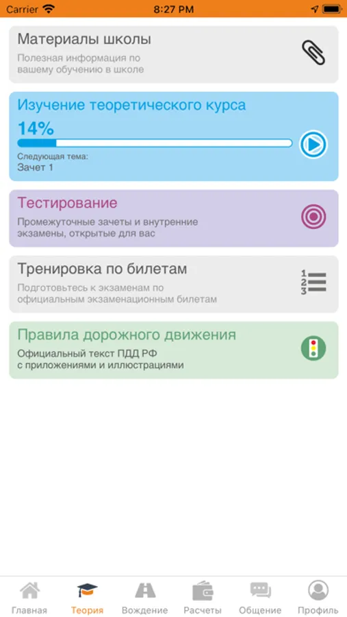 Возможности для курсанта: онлайн-обучение, запись на вождение, тренировка по билетам ПДД, текст ПДД, учет занятий вождения, чаты с школой, история занятий, получение уведомлений и многое другое.