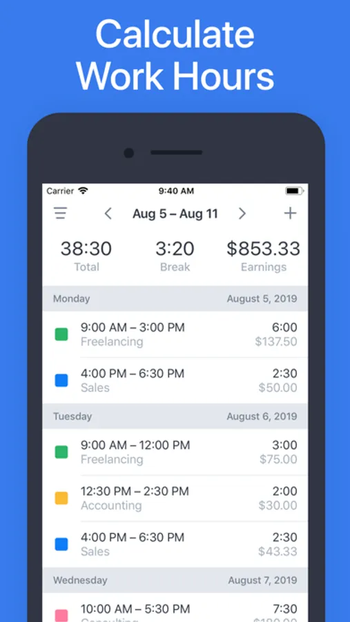 As one of the leading time tracker apps on the App Store, Hours offers many useful and unique features, including: