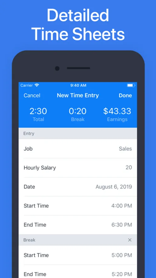 Keep a live timer during a shift and track hours and earnings by the minute.