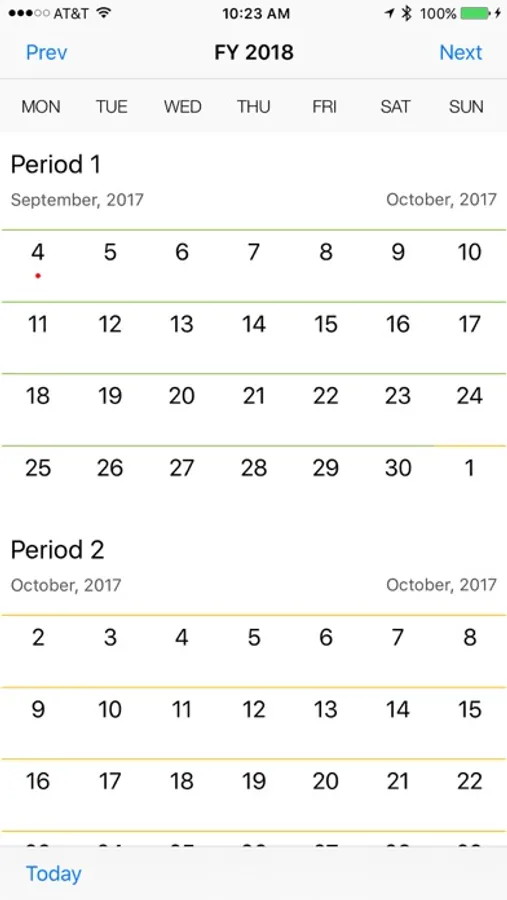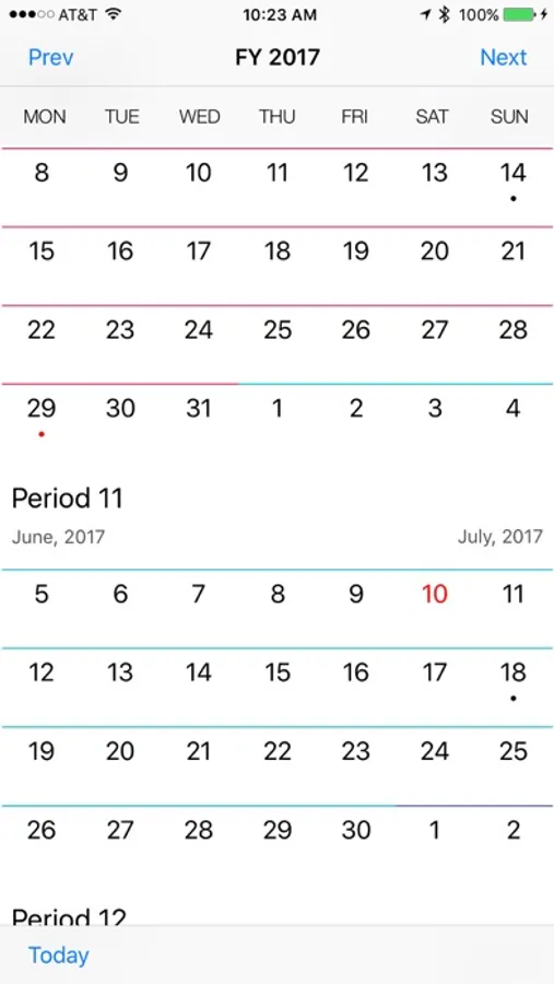 The calendar is formatted to show the fiscal year by period and week instead of by the normal calendar view making it much easier to have an overview of the fiscal year.