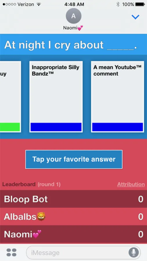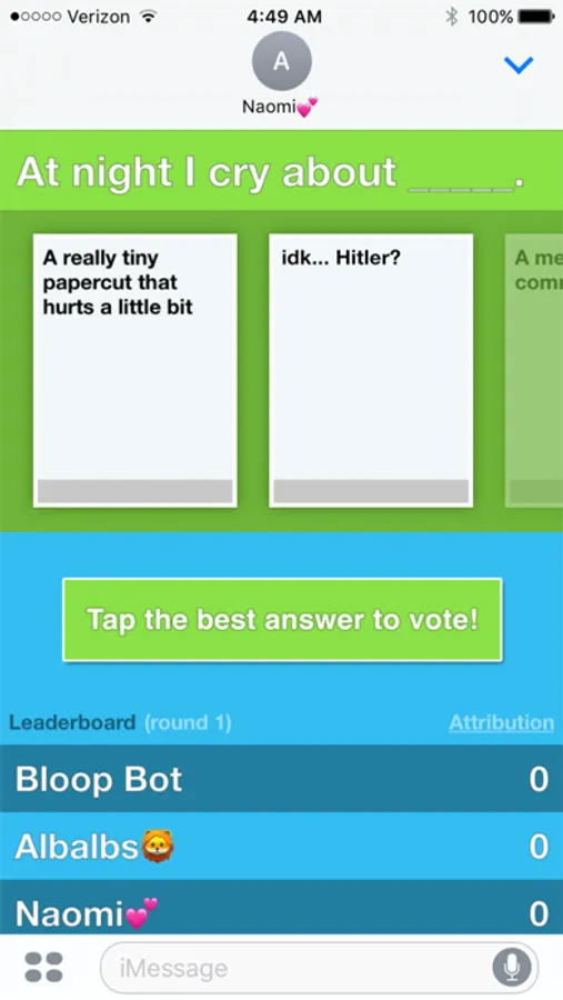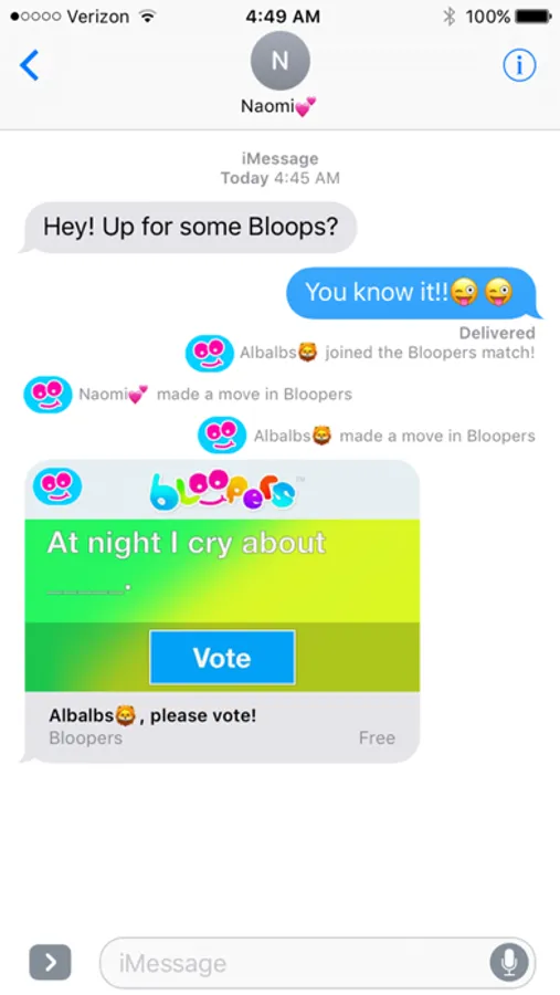Bloopers is a hilarious card game for iMessages filled with lols and laughs.