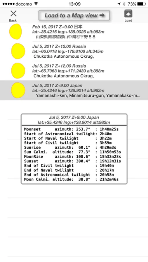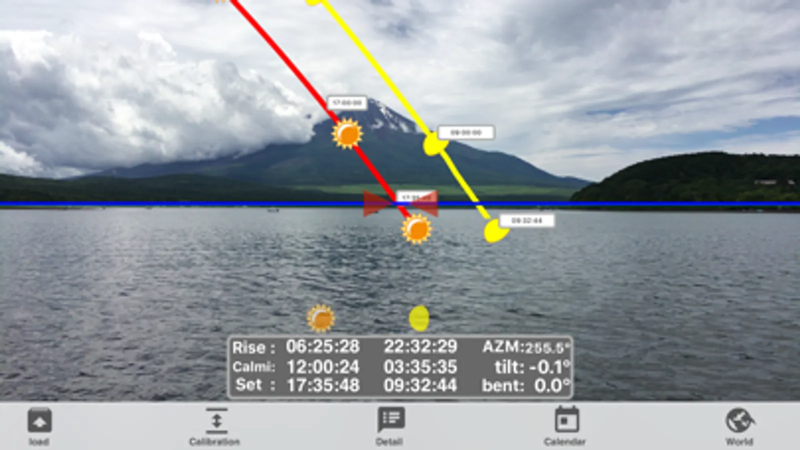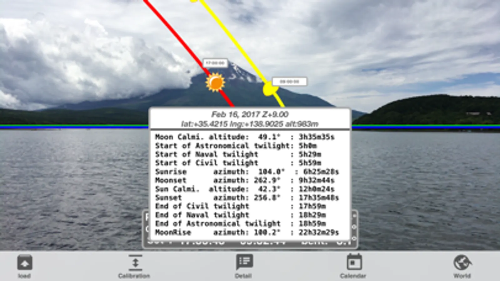 Also you can get the direction and time of the sunrise and sunset over the world on arbitrary days on “World Map View”.