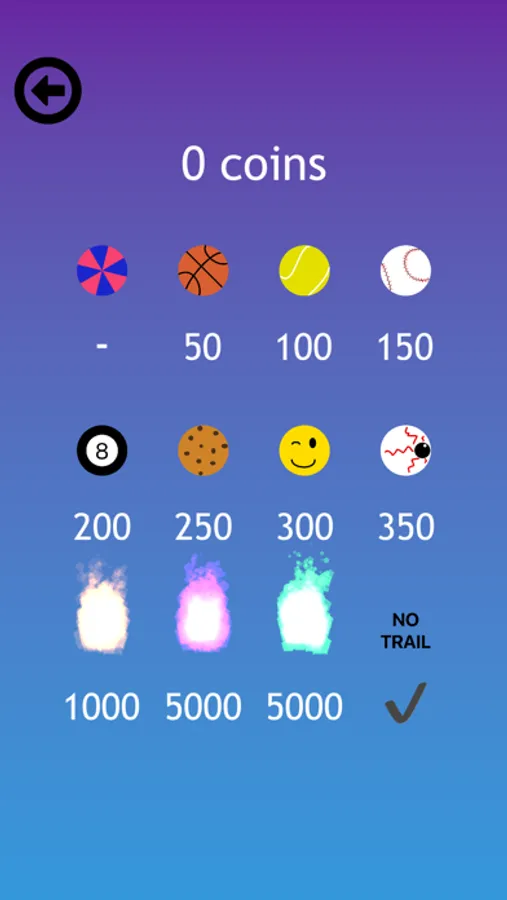 Customize the look of your game by using coins in the shop to get new balls and ball trails!
