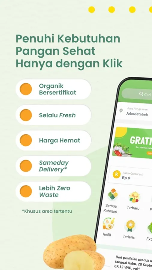- Fitur Greencash untuk belanja lebih praktis dan sebagai jaminan uang kembali