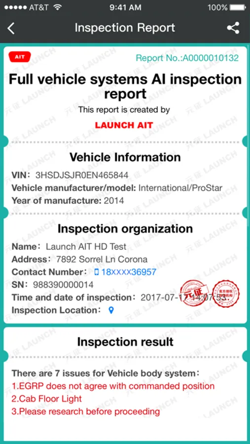 A complete professional inspection report allows you to easily identify the working status of the vehicle status.