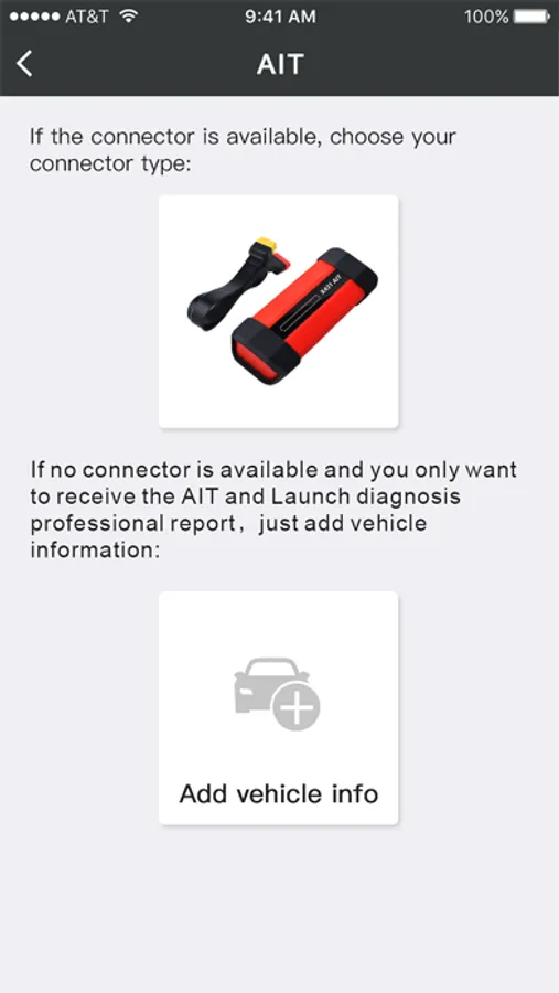 X-431 AIT(Automotive Full-system Artificial Inspection Terminal) is an evolutionary smart plug & play solution for specialized automotive inspection. User achieves complete full vehicle system inspection without any manual work and interface interaction only by plugging the AIT into the vehicle's DLC(Data Link Connector) directly or via extension cable and then switching the ignition key on. After inspection is complete, user can log in the AIT app to view the inspection report via mobile terminal.