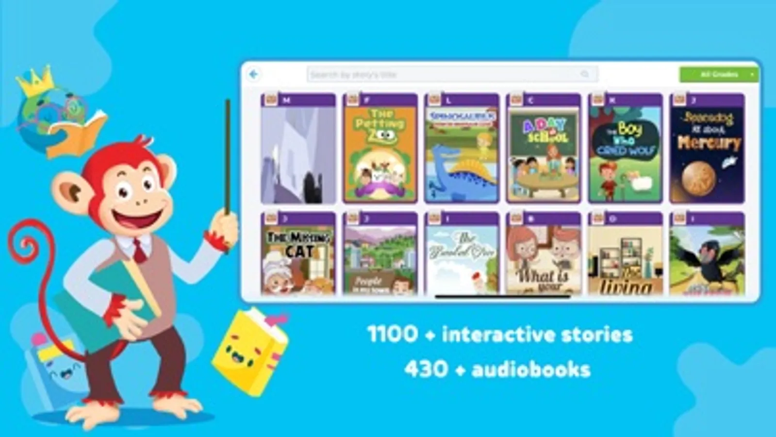 With just a single application, children can practice all 4 skills of listening, speaking, reading and writing effectively thanks to more than 1,100+ interactive picture stories, 430+ audiobooks...