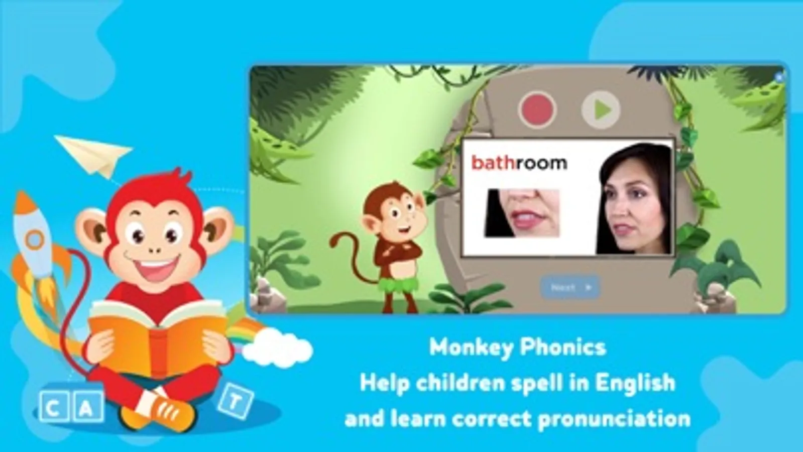 Monkey Stories applies Synthetic Phonics - the famous synthetic decoding and blending method used by the Ministry of Education of English-speaking countries around the world. This method helps children to spell words easily, read fluently, write with correct spelling, and boost confidence when communicating in English.