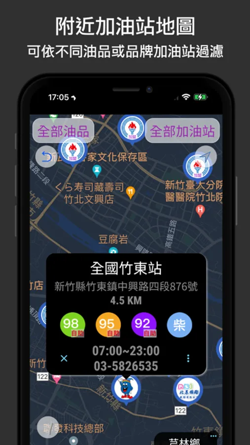站點過濾:只呈現特定連鎖加油站 (比如,中油直營 or 全國等),或者只呈現「自助加油」站點。
