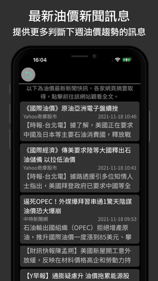 推播通知:提供平日以及週末推播通知最新浮動油價漲跌,相關監測、預估以及公告。