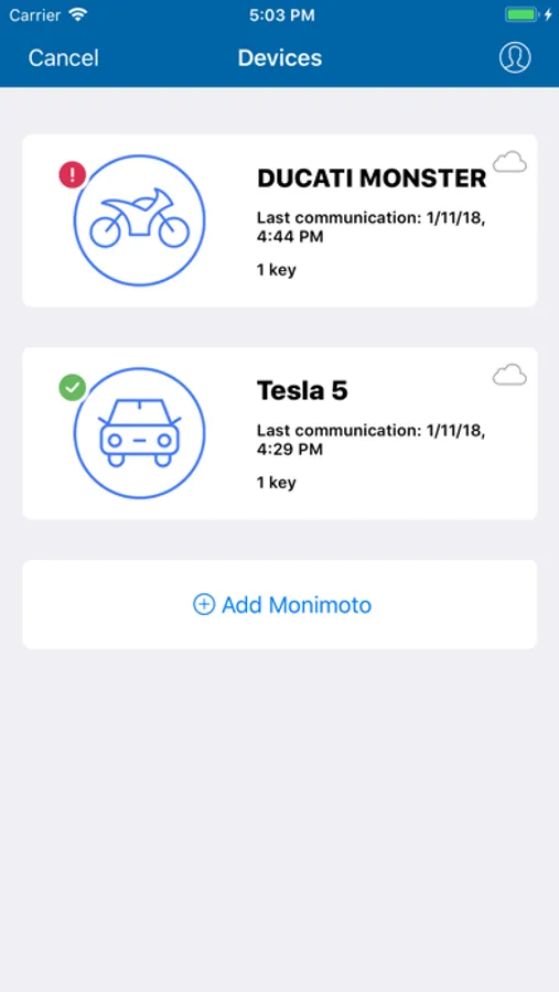 Monimoto - smart alarm tracker for motorcycles - configuration&control app.