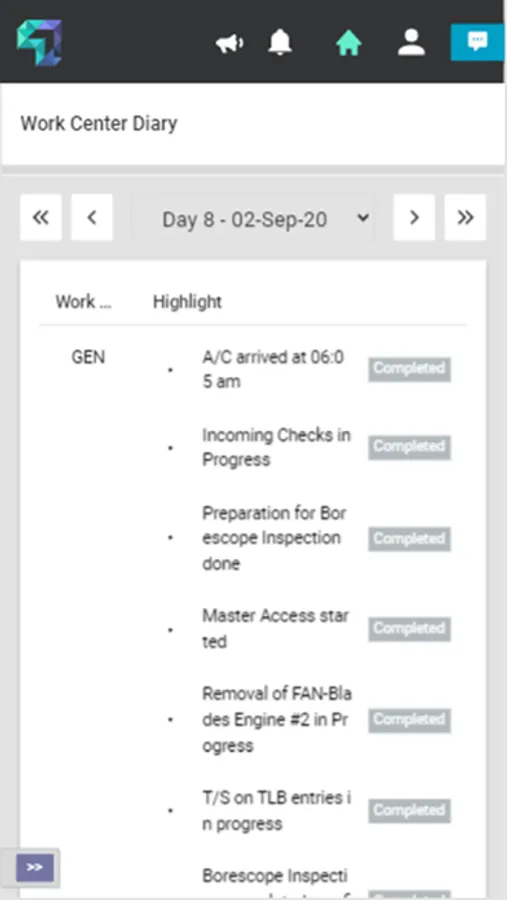 • Work Center Diary: The diary function enables MRO project teams to provide updates about their achievements on a daily base and structure information even better than before