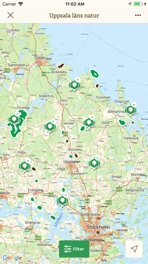 Här hittar du information om naturreservat, friluftsområden och smultronställen i Uppsala län. I maj 2017 innehåller appen ca 20 områden, men antalet kommer att öka under försommaren och hösten.