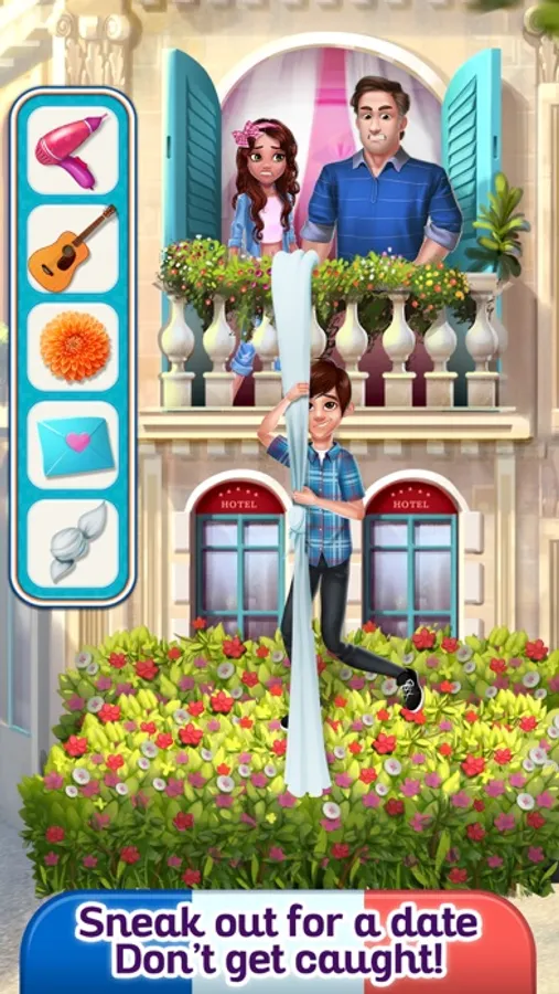 > Date time! Help Megan sneak out of the window for her romantic evening. Pierre will even serenade her with a romantic song on his guitar!
