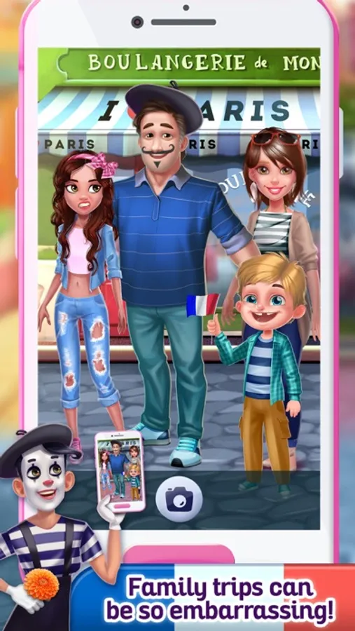 > Enjoy an entertaining mime show. Dress Megan and Jake up as mimes and take fun family selfies.