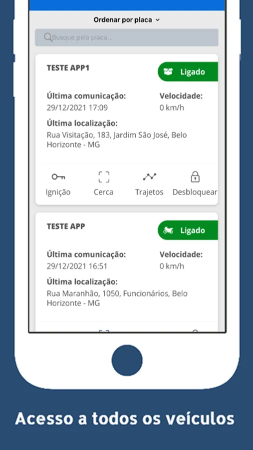 Você poderá ver aonde estão todos os seu veículos no mapa, e poderá consultar o trajeto diário, e visualizar todos os locais que seu veículo esteve no dia.