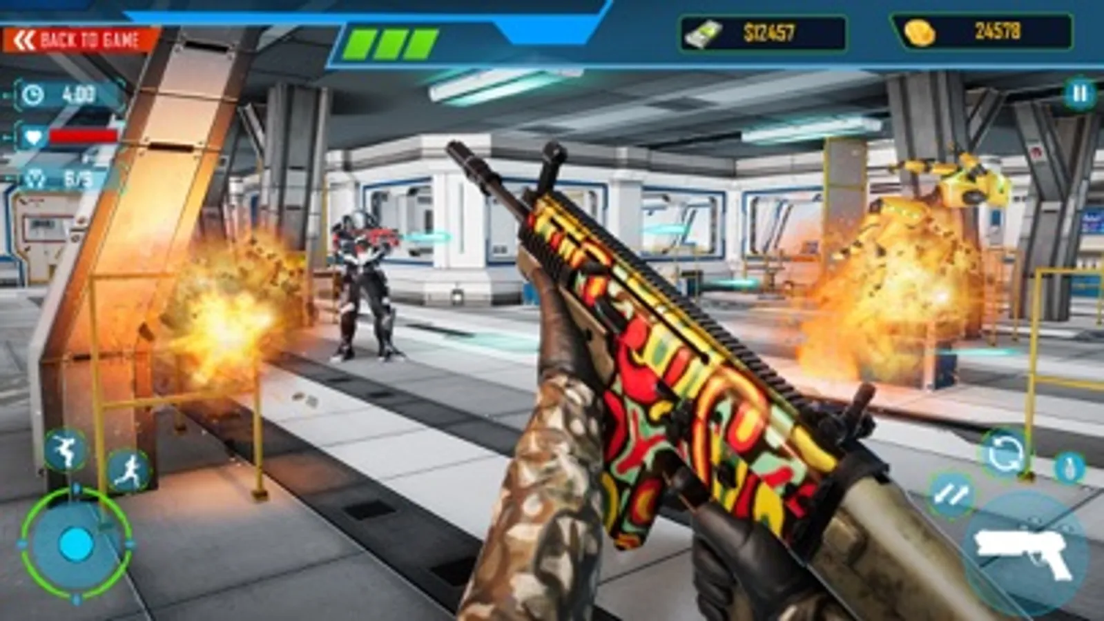 Robot war is all about robot fighting; war robot is going to be your craze if you are love playing robot shooting games. In this futuristic robot game you are a bot with highly secret mission, for shooting steel robots you have to go in every part of futuristic sci fi environment for completing the challenging missions. Keep in mind that in secret buildings of sci-fi realistic environment, there are sniper robots on duty to stop you. Your duty is to stop the robot battle by killing all robo and keep moving forward until transformers fight is end in the battlefield.