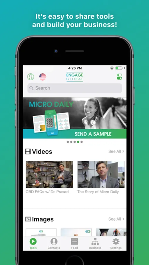 With the Engage Global app, you can easily share your way to success with digital tools that create word of mouth buzz and complement belly to belly efforts! Connect with new contacts and interact with your team by sharing exclusive, corporate approved tools. You’ll have a vast array of marketing materials, videos, social assets, and more all right at your fingertips! The powerful, yet beautifully simple design, along with compelling tools, makes growing your business simpler than ever.