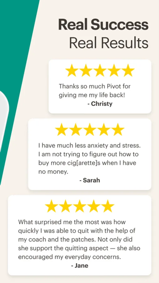 Think reducing or quitting smoking is difficult? With Pivot Breathe, it doesn’t have to be. Pivot Breathe and your dedicated tobacco specialized coach will support you on your journey based on your goal and at your pace.