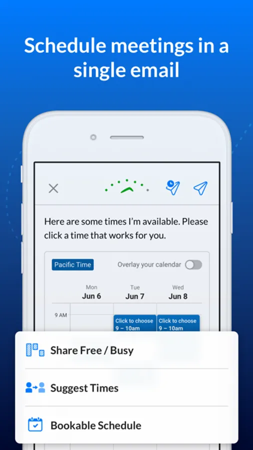 • NEW! One-tap calendar scheduling. Share availability and schedule a meeting while in email.