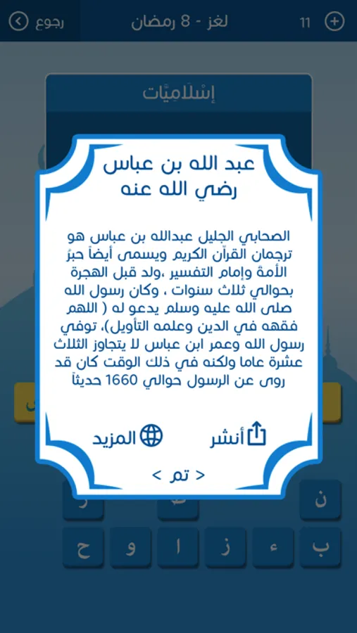 كل يوم على مدار شهر رمضان الكريم لغز جديد, لن ياخذ منك الكثير من الوقت ولكن سيثريك بمعلومات جديدة