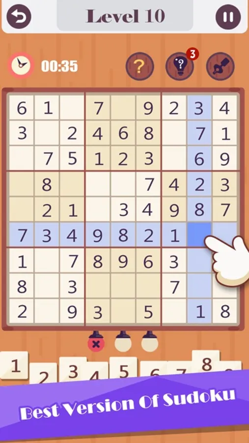 Our Sudoku has some features that make the game easier for you: hints, auto-check, and duplicates highlight. You can use them or complete the challenge without help – it's up to you! What's more, in our Sudoku each puzzle has one solution.