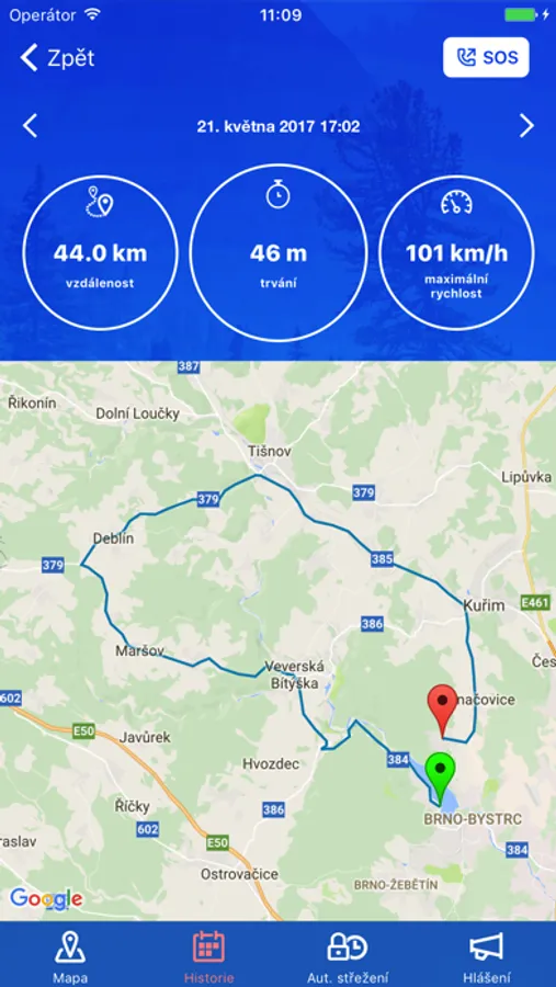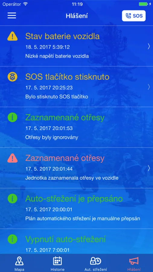 - Přivolání pomoci pomocí tlačítka přímo v aplikaci