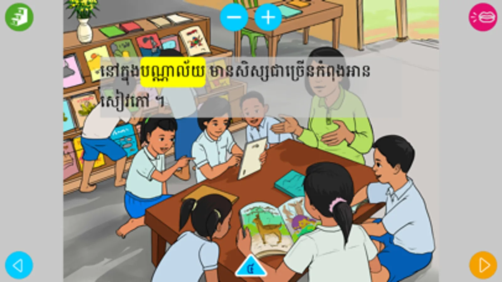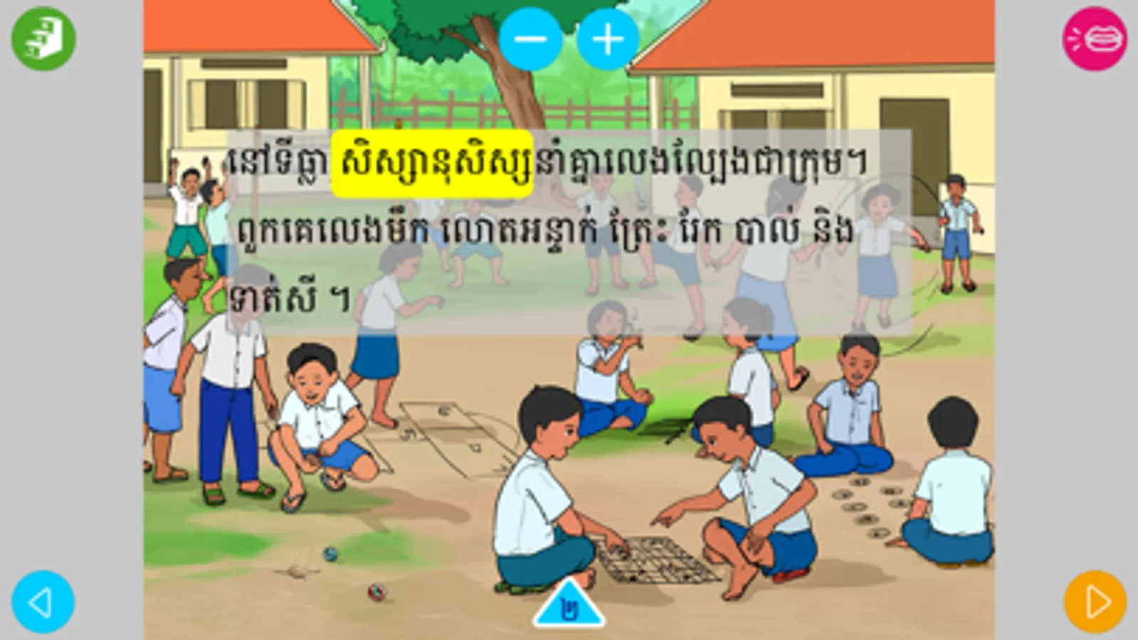 The development of SmartBooks is to improve the reading scores of young Cambodian children in grade 2 and grade 3. It focuses on the providing the experience on using a technology-based approach by developing basal electronic readers which children can gain confidence by reading at the proper level and replace one-size fit all approach. This e-readers will also include digitized quizzes and test exercises to increase the efficiency and validity of teacher assessment. Moreover, we believe that each of these elements of SmartBooks are not only innovative in and of themselves but offer unique synergies that will be transformative. For example, the existence of basal readers will for the first time help to modulate reading instruction for children based on their reading level while the electronic form of the readers will provide opportunities for interactive features and time-saving digital testing. SmartBooks contain features such as audio narration, sound effects, and animations are effective in helping young children to decode new words and improve their reading comprehension. Such interactive features make reading a very attractive activity to children, thereby enhancing their motivation to read without the fear of failure that many children associate with reading tasks in hard print. Many of the self-help of SmartBooks are word definitions or pronunciation which ensure that children who might otherwise be shy of asking the teacher a particular question can readily access the desired information through this interactive features.