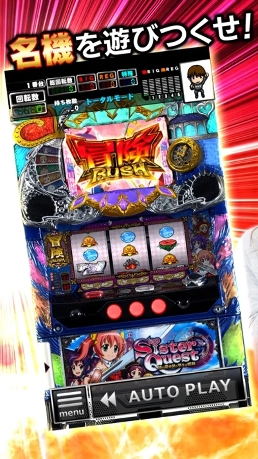 パチスロにファンタジー RPG の世界とゲーム性を取り入れた「シスタークエスト〜時の魔術師と悠久の姉妹〜」がグリパチ初登場です!豪華声優によるキャラクターボイスやリールアクション、ハイクオリティアニメなどを忠実に再現。仲間との「絆」がART抽選の鍵を握る!