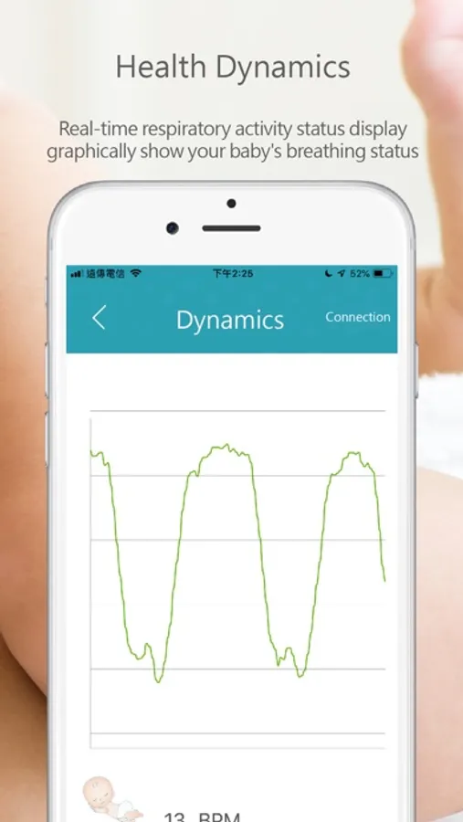 Smart Baby Mat can detect breath movement count over one minute. WHO advises caregivers that the easiest way to identify early pneumonia in a baby is to observe the breathing rate over one minute. You can use the Smart Baby Mat to track your baby’s health status.