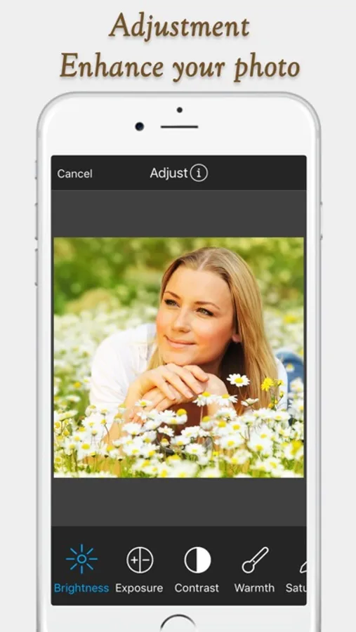 - Powerful photo editor with tools to adjust brightness, contrast, temperature, hue, blue, b/w, ancient, breeze, classic, pale twilight and many more.