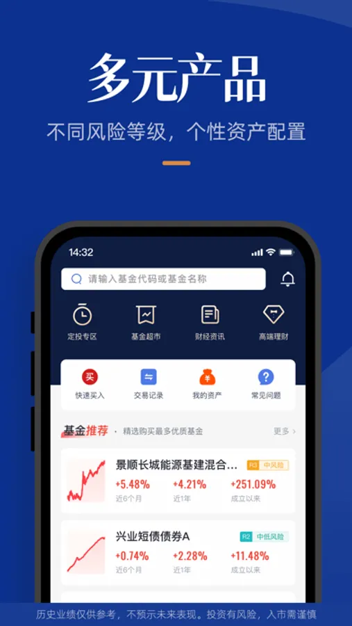 ——基金购买:为用户提供丰富的公募基金产品选择。