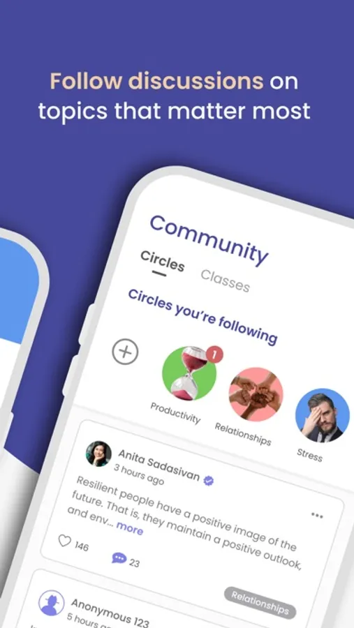 Join private group therapy sessions or start a conversation in our forums. Moderated by qualified experts, they’re a great way to immerse yourself in topics like productivity, relationships, and stress.