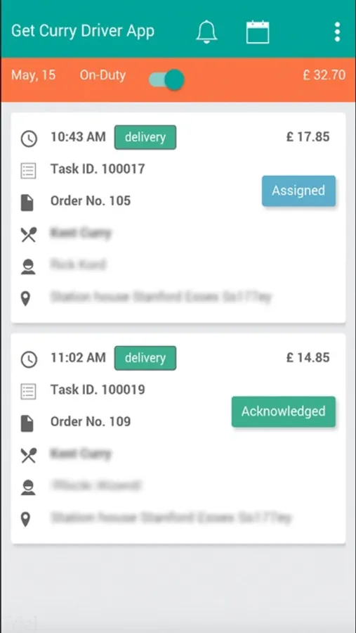 Delivery drivers for restaurants who have subscribed to GetCurry.co.uk use this app. Works in conjunction with the GC Management app (see separate listing) as well as the main GC admin panel.