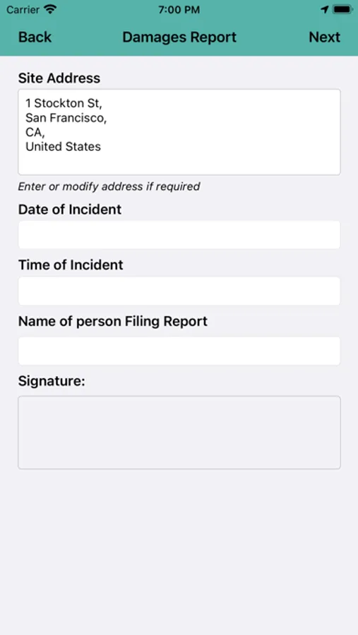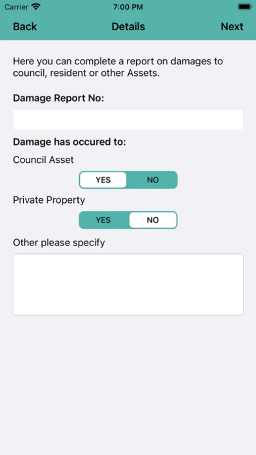 This application is used for documenting site incidents such as damaged council assets or private property damage. It utilizes the GPS positioning, image tagging with comment entry and electronic signatures.