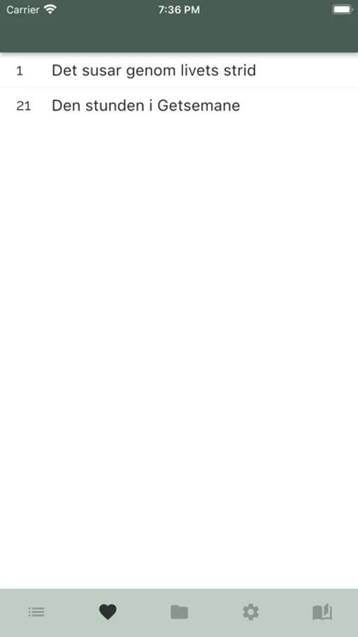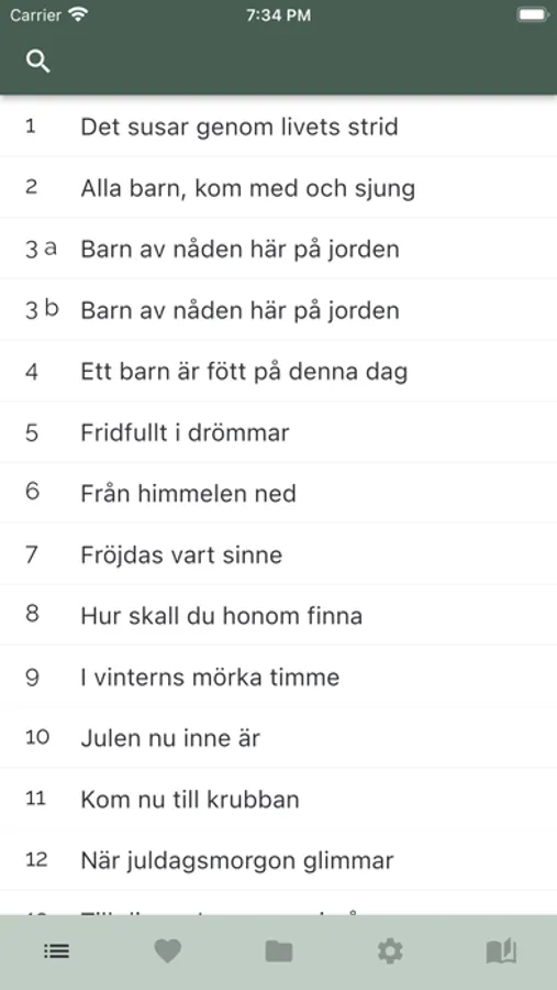 - söka bland sångerna enligt nummer eller text