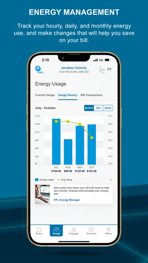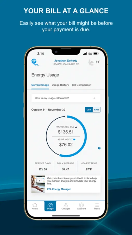 -View your daily energy cost average and quickly see how your bill compares to the previous month