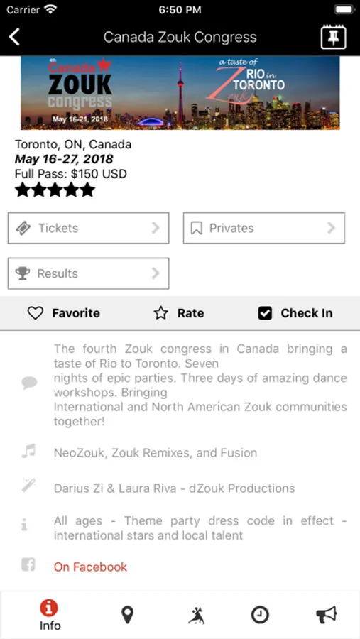 * Rate, Favourite and Check-in at events, workshops, and activities you attend