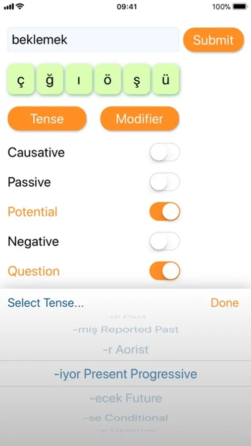 Use iMekMak to help you understand how Turkish suffixes are put together and in which order. Just enter a Turkish (or English) verb and it will do the rest.
