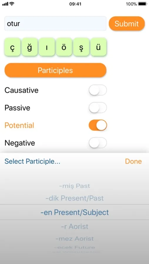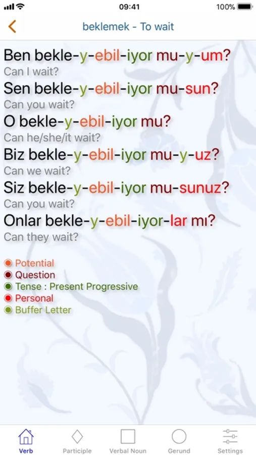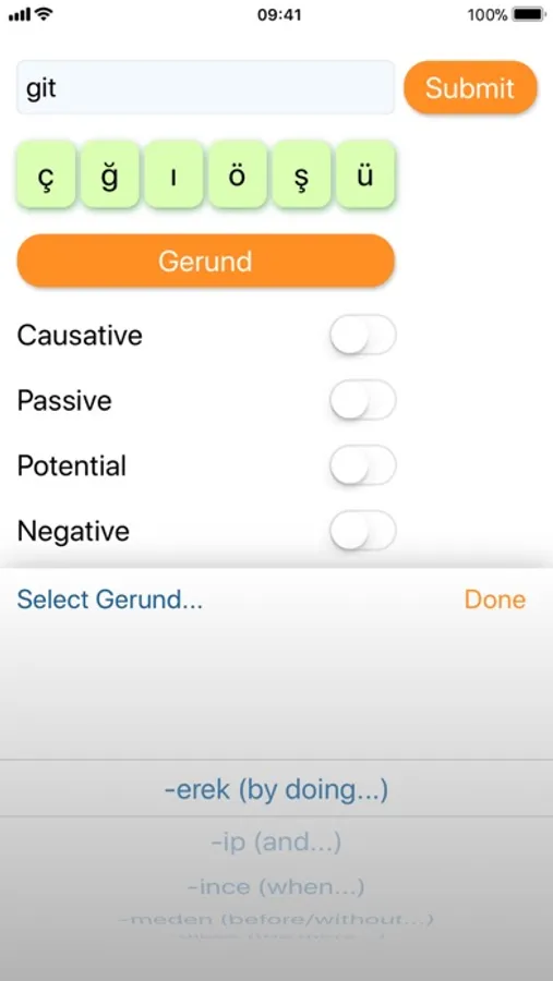- Over 3000 verbs embedded for recognition, over a 1500 of which have English translations available. (So this can be useful for Turks learning English too)