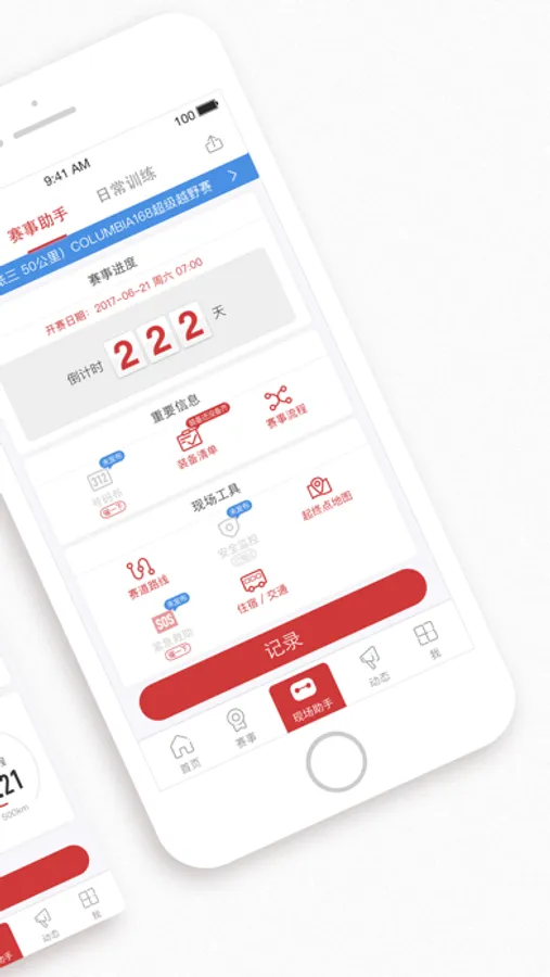 - 现场助手:一站式现场信息服务,赛事路线导航、起终点地图及导航、安全监控、联系救助;运动记录与实时位置共享;