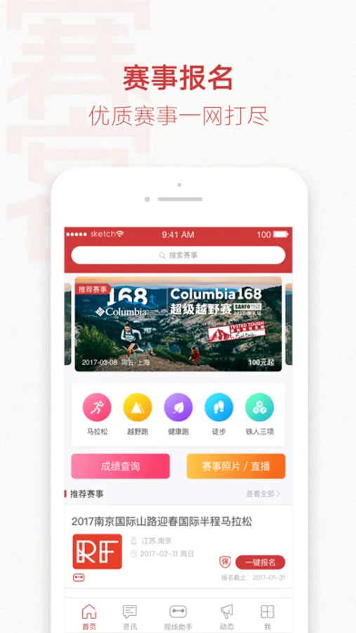 - 赛事报名:优质赛事一网打尽,清晰的分类、高效的搜索与筛选,便捷的支付。
