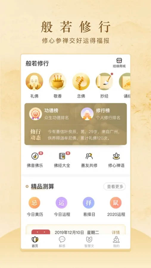 3、寺院上香祈福:般若入驻了各地区有名的寺庙、寺院,生活不顺或有所求时,在APP上就能上香或祈福,你也可以通过百度地图、高德地图查看寺庙、寺院详细地址。