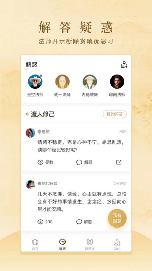 2、法师大师开示:法师、大师、学者会不定时更新开示的文章、图片、视频,你如果有具体问题需要被开示,无需电话或微信,APP上直接向法师、大师、学者提问,收到法师、大师、学者的文本或语音回答。另外,和映客、虎牙、花椒、YY等一样,般若也会有法师、大师的开示直播或录播视频。
