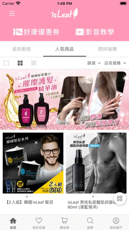 isLeaf 從美容保養、髮品系列、私密護理、清潔用品、居家擴香,超過百項商品,為您掌握最新時尚潮流,是你網路購物的好夥伴