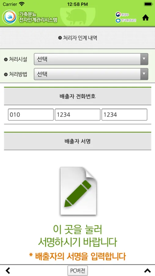 아이폰에서도 가축분뇨 및 액비 전자인계서를 언제 어디서나 작성할 수 있습니다.