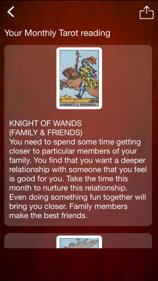 Choose tarot cards from the tarot deck (ONE card for your daily horoscope and FIVE cards for the monthly horoscope). That's it! Your horoscope will be ready for you!
