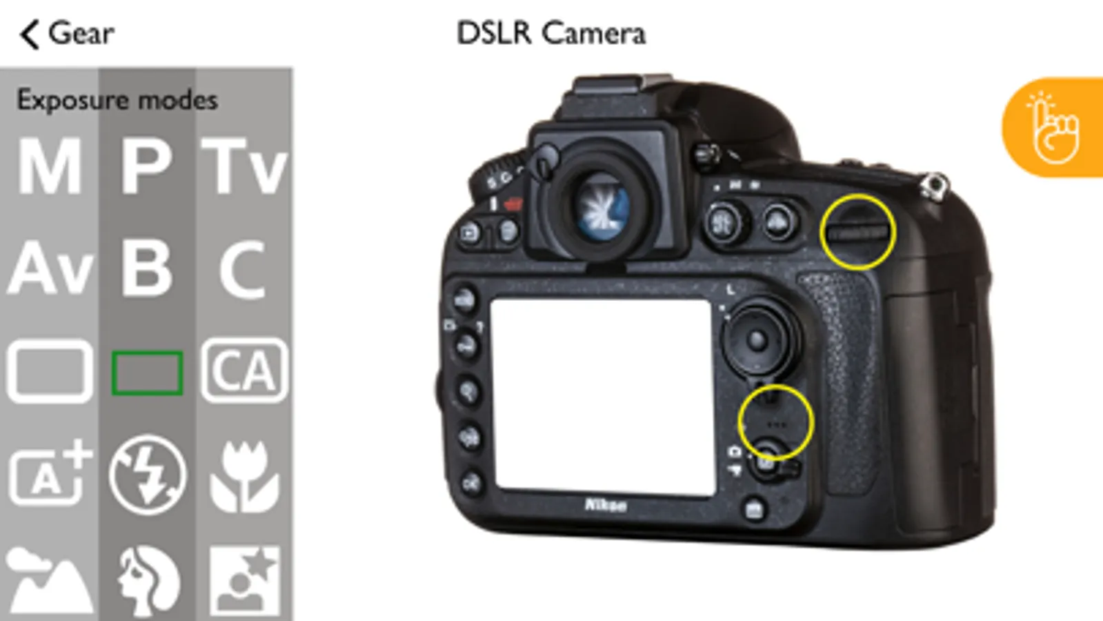 • Use the animated cameras to navigate your own DSLR camera easily in the field.